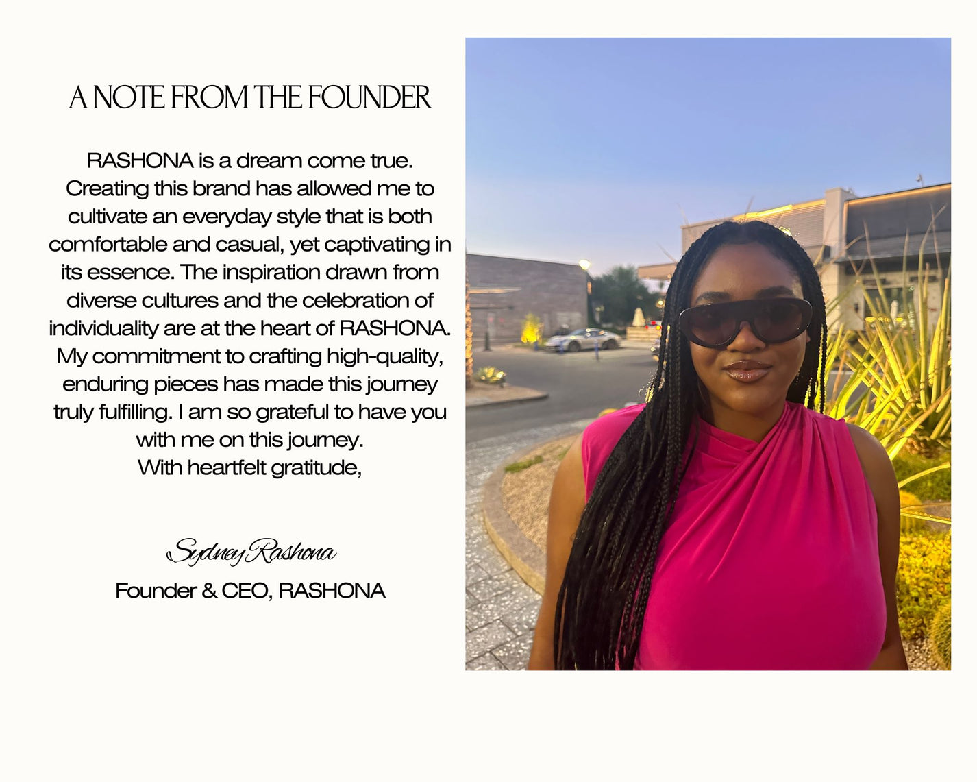Founded by Sydney Rashona, the brand emerged from a deep fascination with ancient civilizations and the artistry they left behind.